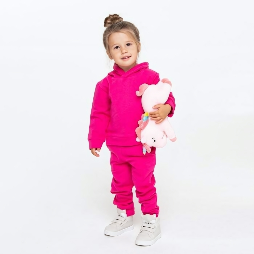 Яркий комплект из толстовки и брюк с мягким начёсом станет любимой одеждой вашей дочери. Натуральный хлопок обеспечивает комфорт даже при длительной носке.