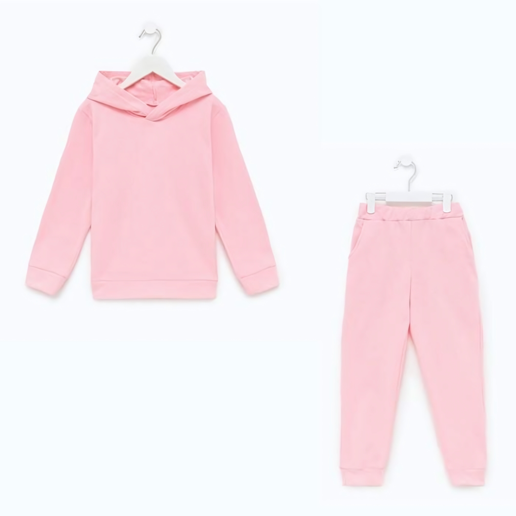 Комплект для девочки (толстовка, брюки) с начёсом, 100% хлопок, цвет светло-розовый, размер 128