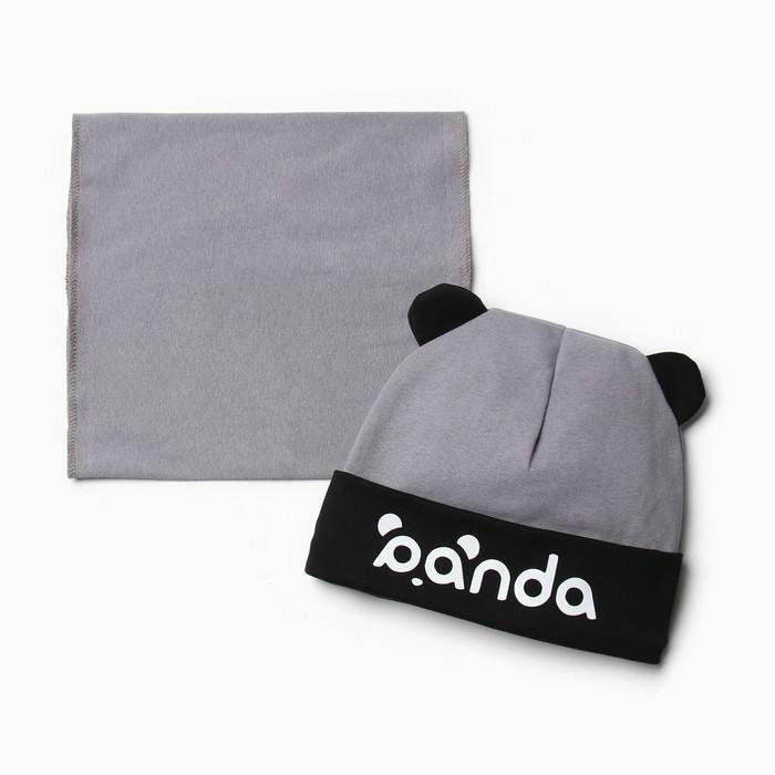 Комплект детский «А.7214» шапка и снуд с ушками панды, 100% хлопок, серый, р.48-50