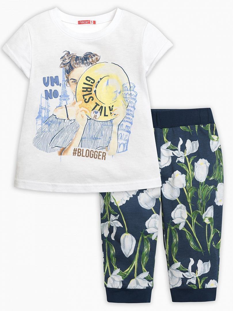 Комплект для девочки 98 р-р, футболка белая с принтом 'GIRLS TALK' + брюки цветочные