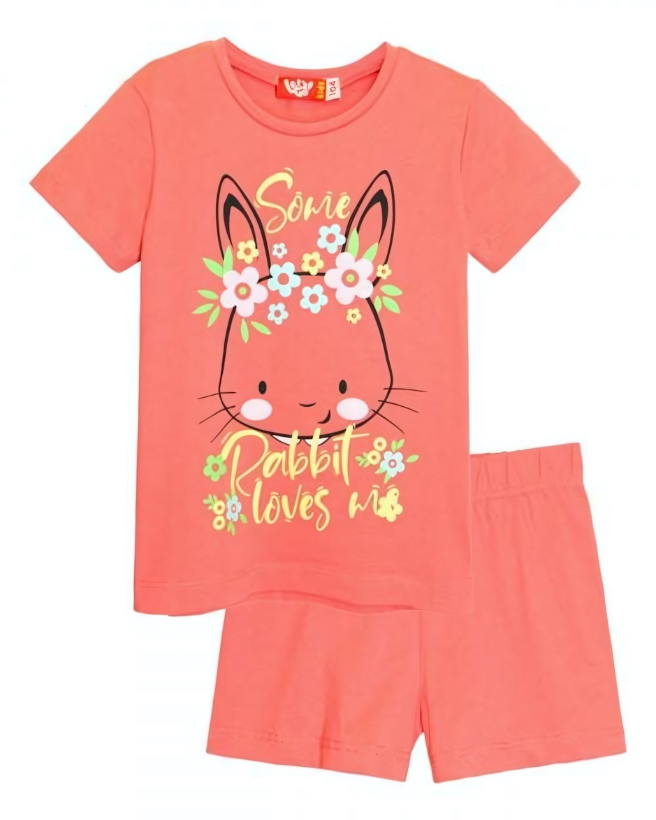 Этот комплект состоит из мягкой футболки и удобных шорт, выполненных из 100% хлопка, который приятно ощущается на коже и обеспечивает оптимальную вентиляцию. Коралловый цвет добавляет яркости образу, а милый рисунок с зайчиком на футболке поднимет настроение и привлечет внимание.