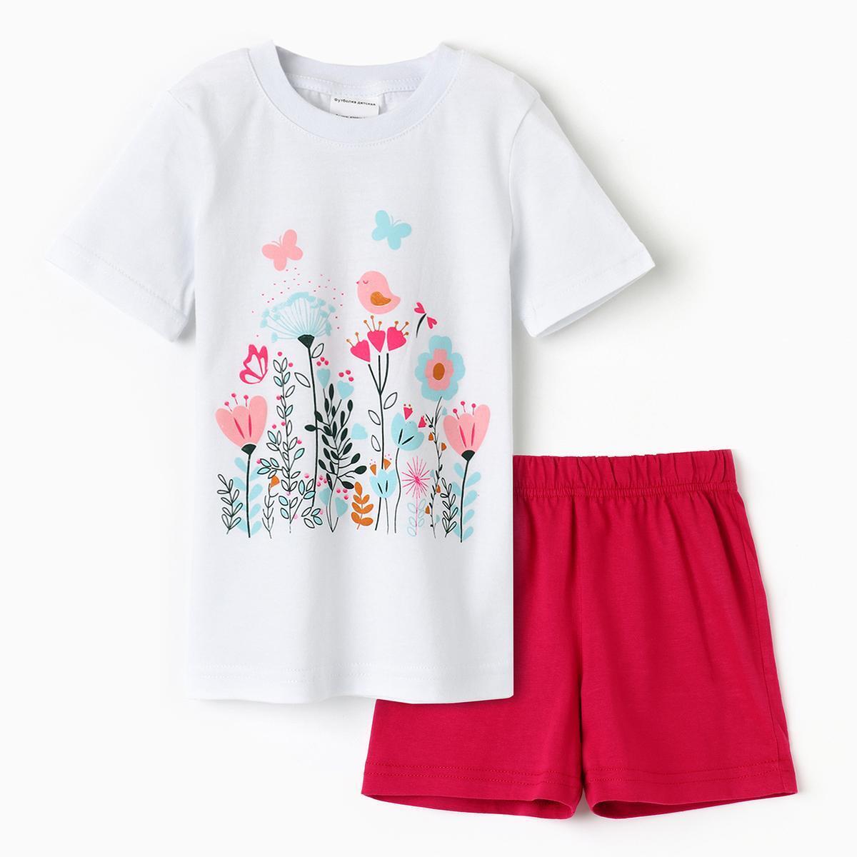 Стильный и удобный комплект одежды для девочки, состоящий из футболки и шорт, станет идеальным выбором для теплого времени года. Нежный принт с цветами и бабочками дарит образу свежесть и настроение, а мягкий натуральный хлопок обеспечивает комфорт в течение всего дня.