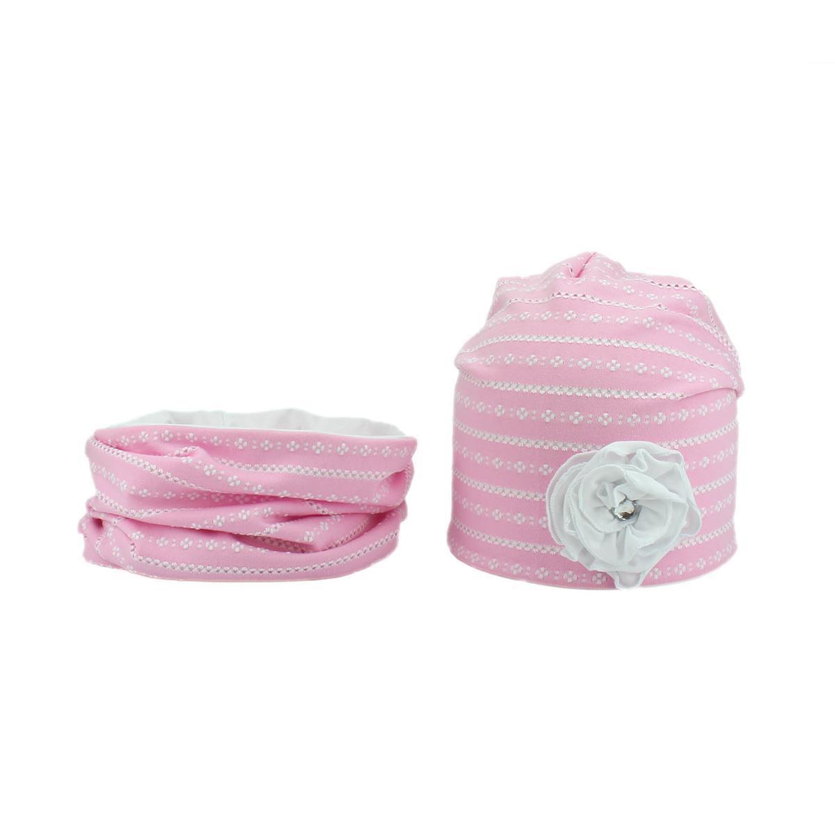 Комплект для девочки "Мегашапка": шапка и шарф, розовый с цветами, р.46-48, комфорт и тепло