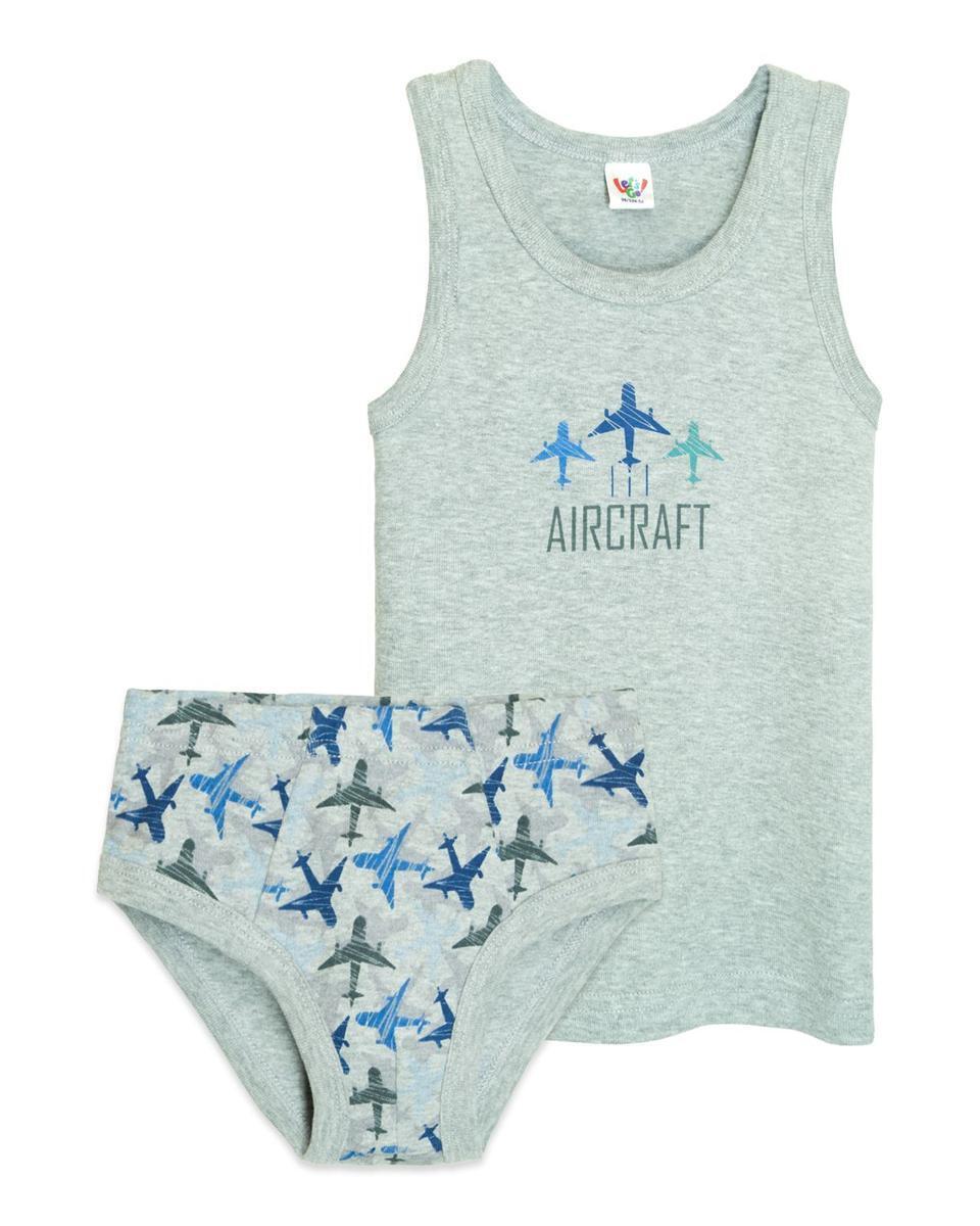 Комплект нижнего белья 'Let's Go' для мальчиков, 122/128 р., хлопок, серый/синий
