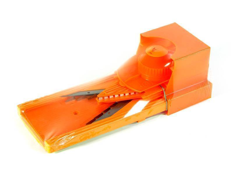 Устройство подходит тем, кто ценит время и порядок. Встроенный контейнер моментально собирает нарезанные продукты, не позволяя им рассыпаться. Оранжевый цвет изделия отлично впишется в современный интерьер и поднимет настроение на любой кухне.
