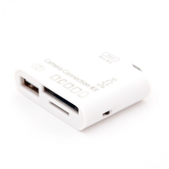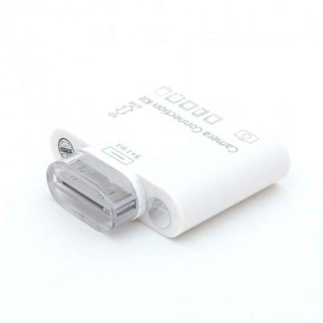 Адаптер выполнен в белом цвете и имеет прямоугольную форму с закругленными краями. Он легкий и не занимает много места, что делает его идеальным для путешествий. С помощью этого устройства вы сможете легко и быстро передавать свои воспоминания с камеры на iPad, не тратя время на сложные процедуры.