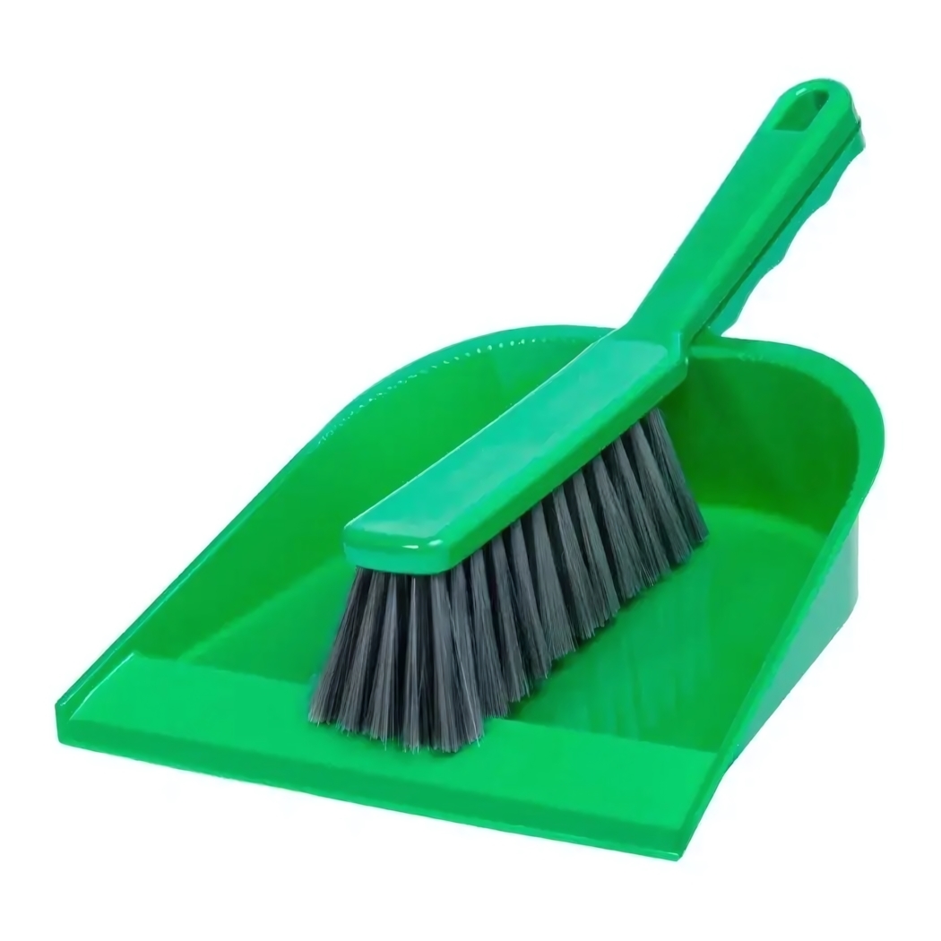 Просто подметите мусор щеткой-сметкой, затем аккуратно соберите его в совок. Благодаря оптимальному размеру инструментов вы сможете убрать даже в труднодоступных местах за мебелью. После использования промойте комплект под проточной водой и просушите.