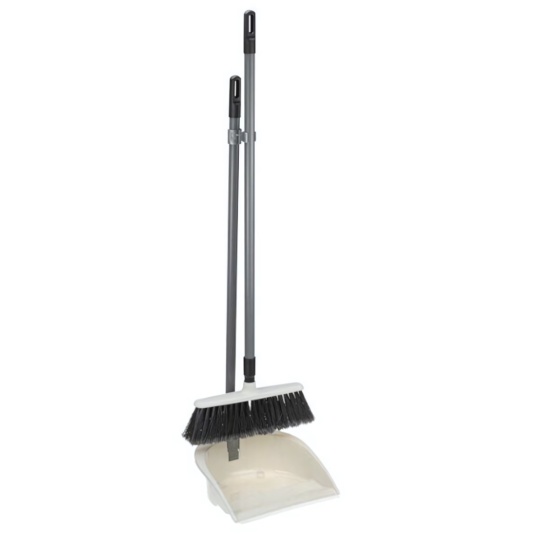 Комплект включает в себя веник с длинной ручкой и удобный складной совок. Длинная ручка веника позволяет регулировать его высоту, что делает уборку комфортной для людей любого роста. Совок выполнен в белом цвете и имеет округлую форму, что обеспечивает легкость в сборе мусора. Этот комплект идеально подходит для использования в домашних условиях, а также в офисах и общественных местах.
