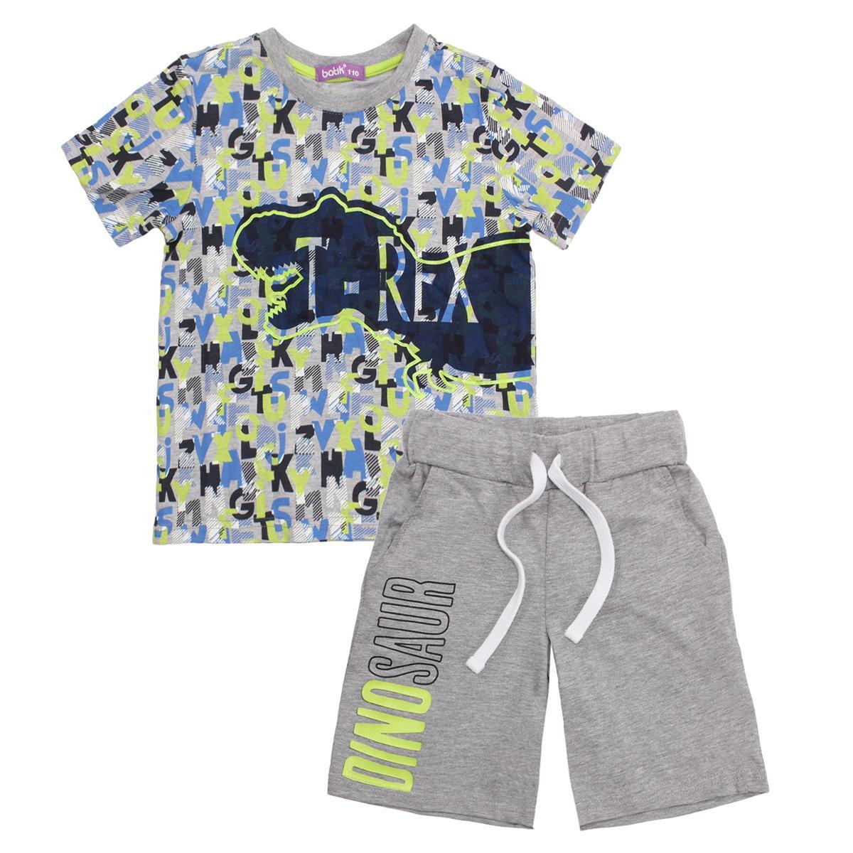 Футболка выполнена в сером цвете с многоцветным принтом, а шорты также серого цвета с белым шнурком. Размер 110 см идеально подходит для детей, которые активно растут и нуждаются в удобной и стильной одежде. Этот комплект станет отличным выбором для вашего ребенка, обеспечивая ему комфорт и стиль в повседневной жизни.