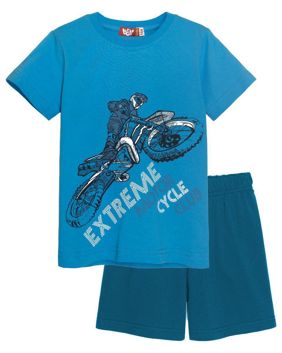 Комплект "Let's Go" для мальчика, р.128, футболка+шорты, 100% хлопок, синий