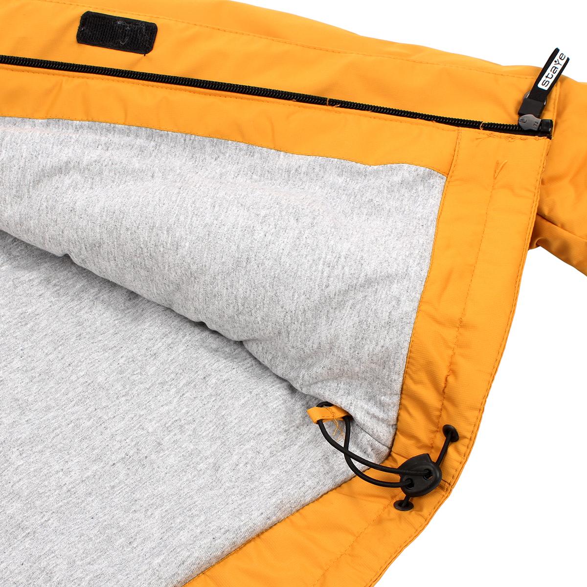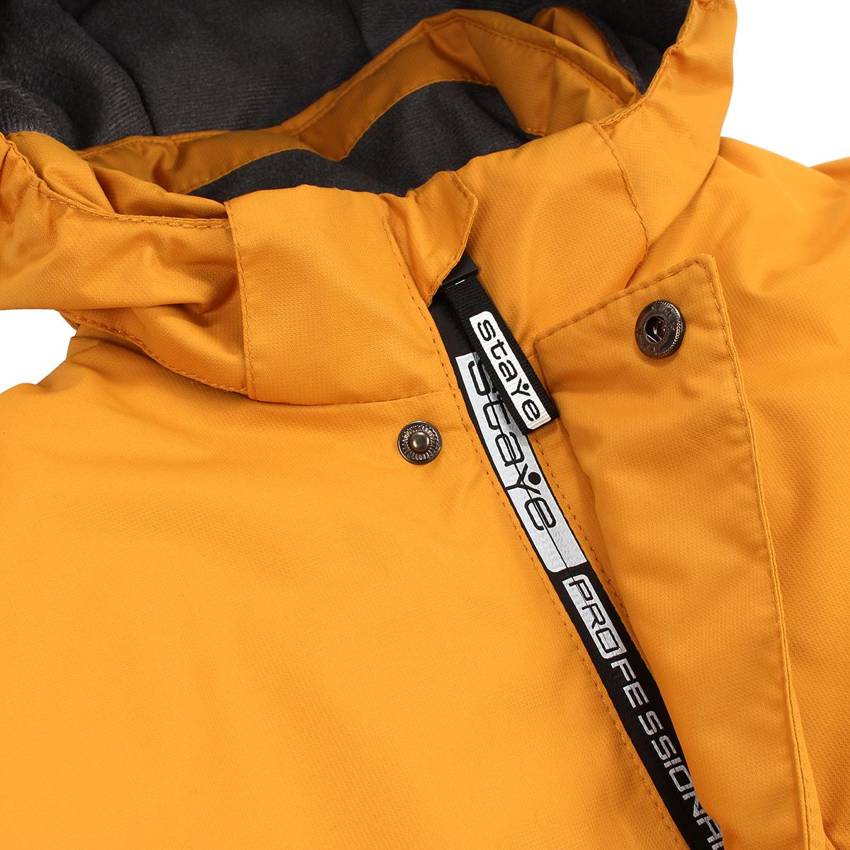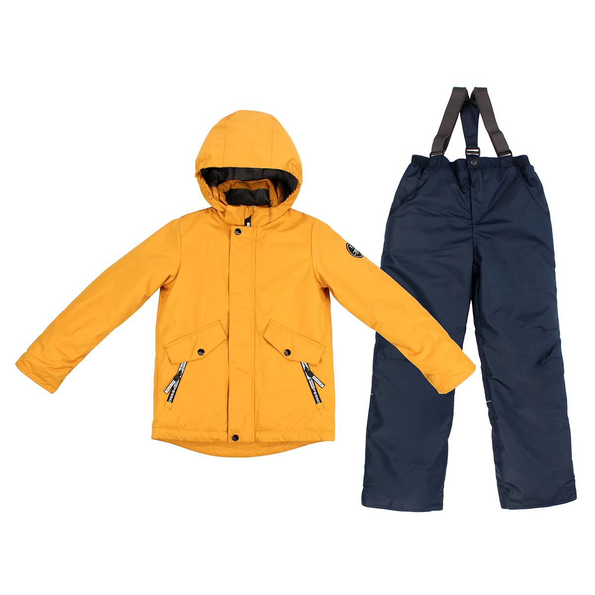 Размер в наличии — 128, материал — мембрана, утеплитель — «Теплофил» 100% пэ, фасон — комбинированный с капюшоном и утеплёнными брюками, цвет — яркий жёлтый для лёгкости обнаружения и стиля.