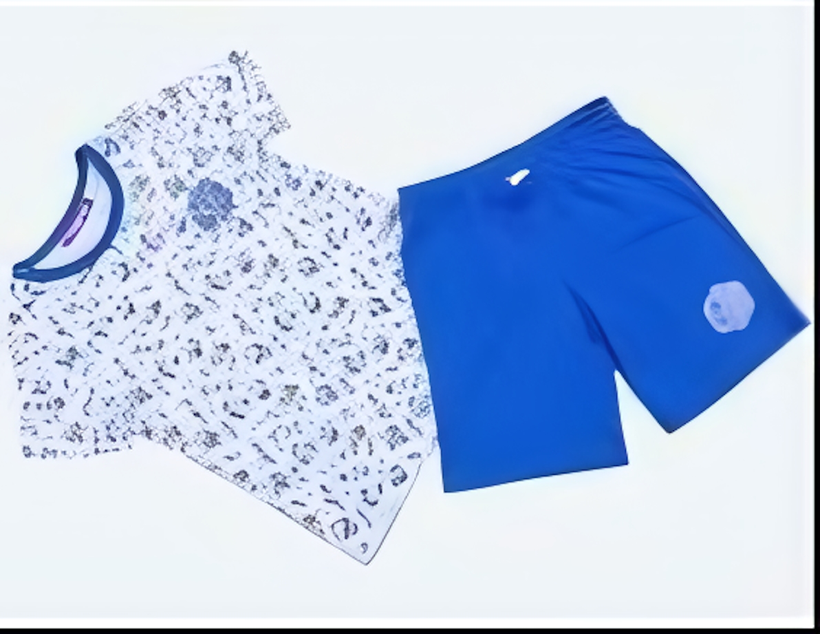 Комплект для мальчика р.98, футболка и шорты, белый/синий, хлопок