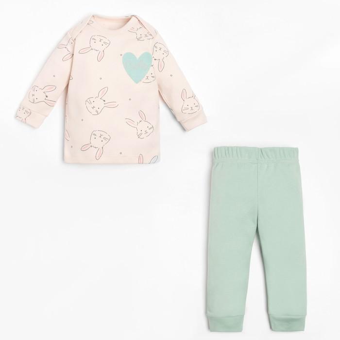 Джемпер и брюки «Зайчик» для малышей, 100% хлопок, рост 80-86 см, бежевый/оливковый