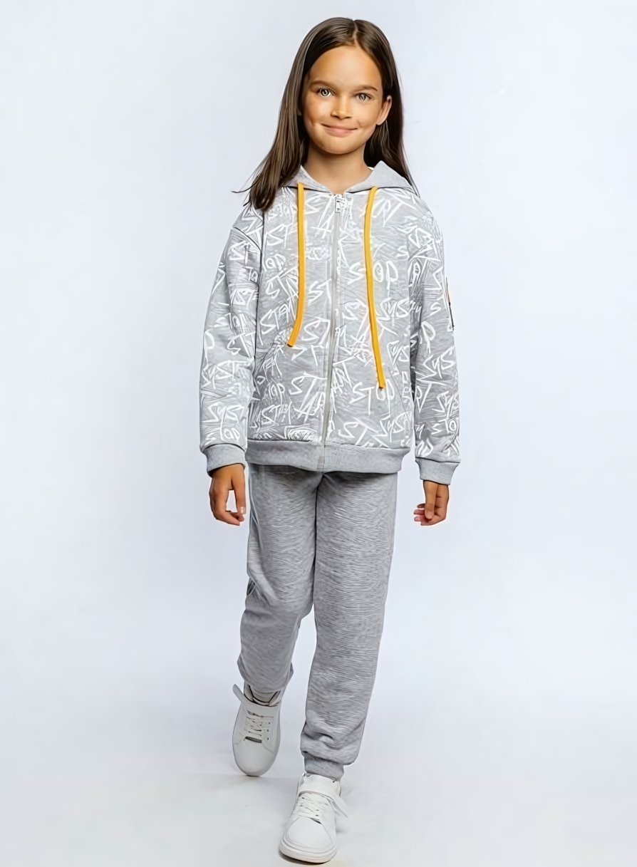 Выбирая этот комплект, вы получаете не только стильный, но и практичный вариант одежды. Серый цвет с оранжевыми шнурками добавляет яркости, а белый принт на джемпере делает его уникальным. Одежда легко комбинируется с другими элементами гардероба, что позволяет создавать разнообразные образы.