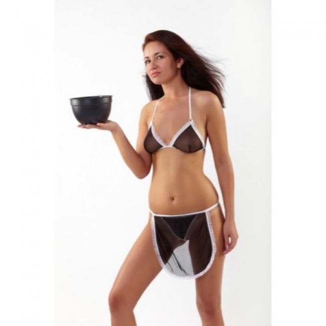 Комплект горничной состоит из лифа, трусиков и фартучка, что делает его идеальным выбором для особых случаев или тематических вечеринок. Он подходит для женщин, которые хотят добавить немного флирта в свою жизнь. Лиф с треугольными чашками и тонкими лямками, завязывающимися за шеей, обеспечивает отличную поддержку и подчеркивает линию декольте. Трусики с прозрачной передней панелью и фартучек, обрамленный белой лентой, создают гармоничный и соблазнительный образ.