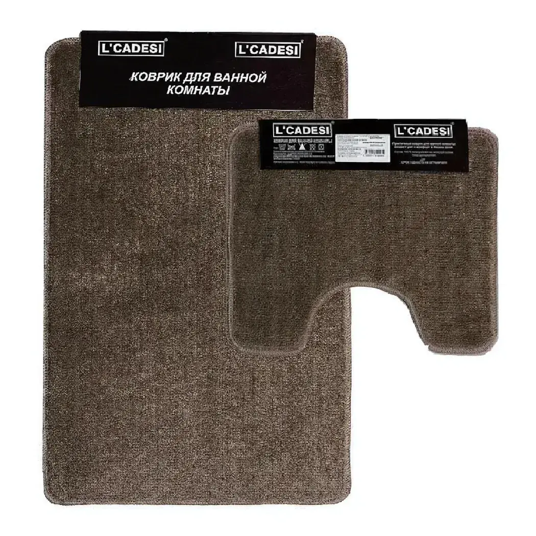 Комплект из 2 ковриков для ванной Light Latex, 60х50 см, коричневый, с вырезом под унитаз и прямоугольный