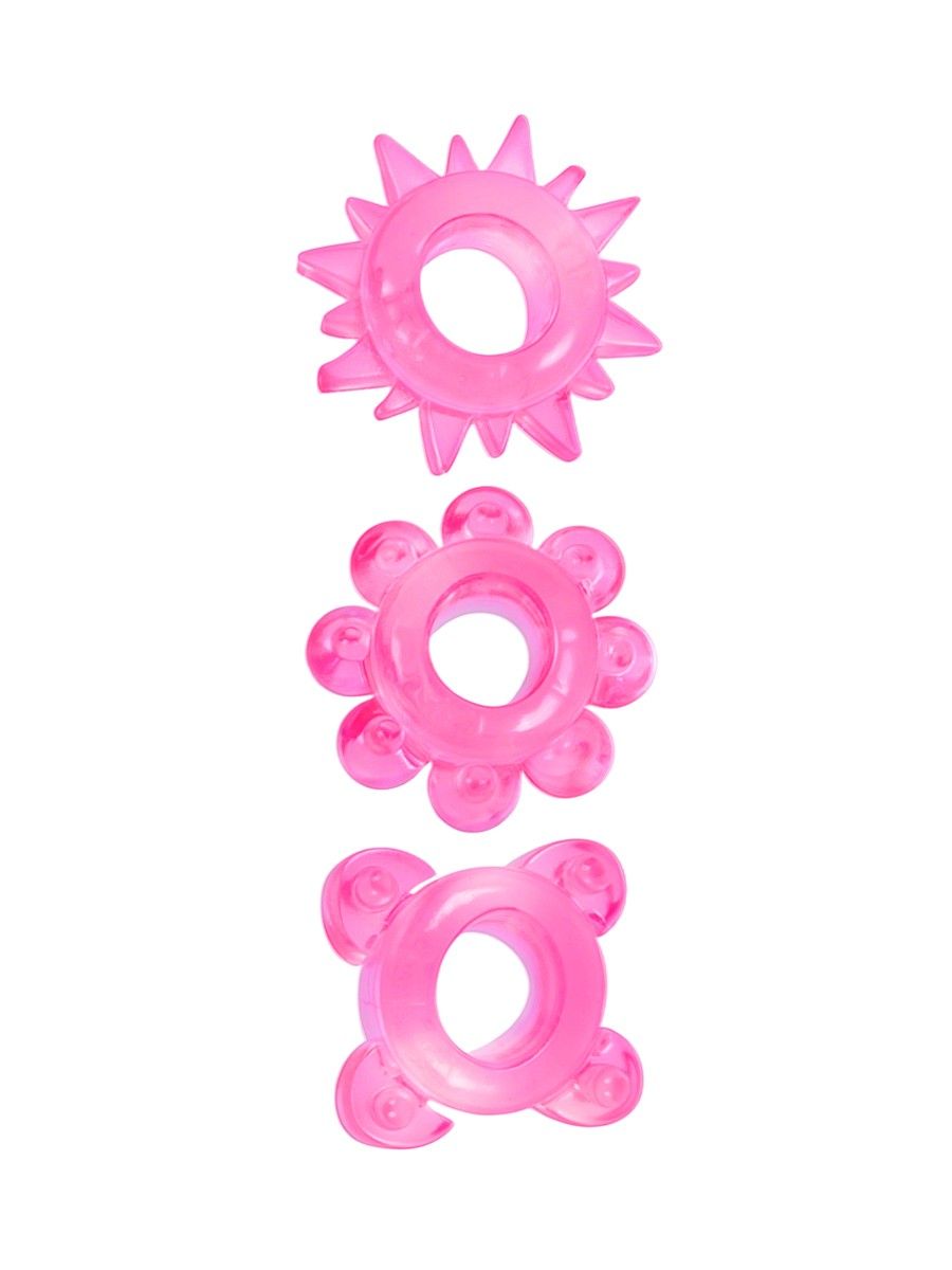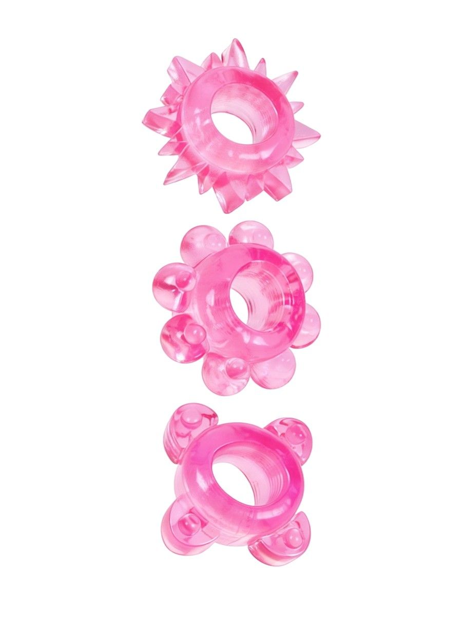 В данный комплект входят три кольца с уникальным внешним рельефом. Каждый дизайн разработан для дополнительной стимуляции клитора и интимных зон партнерши во время акта: