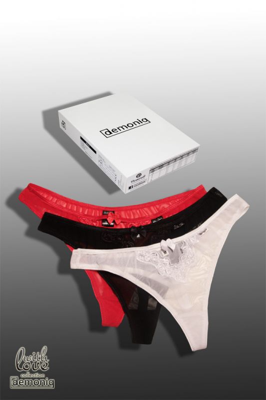 Позвольте себе разнообразие и качество с комплектом трусиков-стринг Demoniq "With Love Collection". Три цвета, один безупречный стиль.