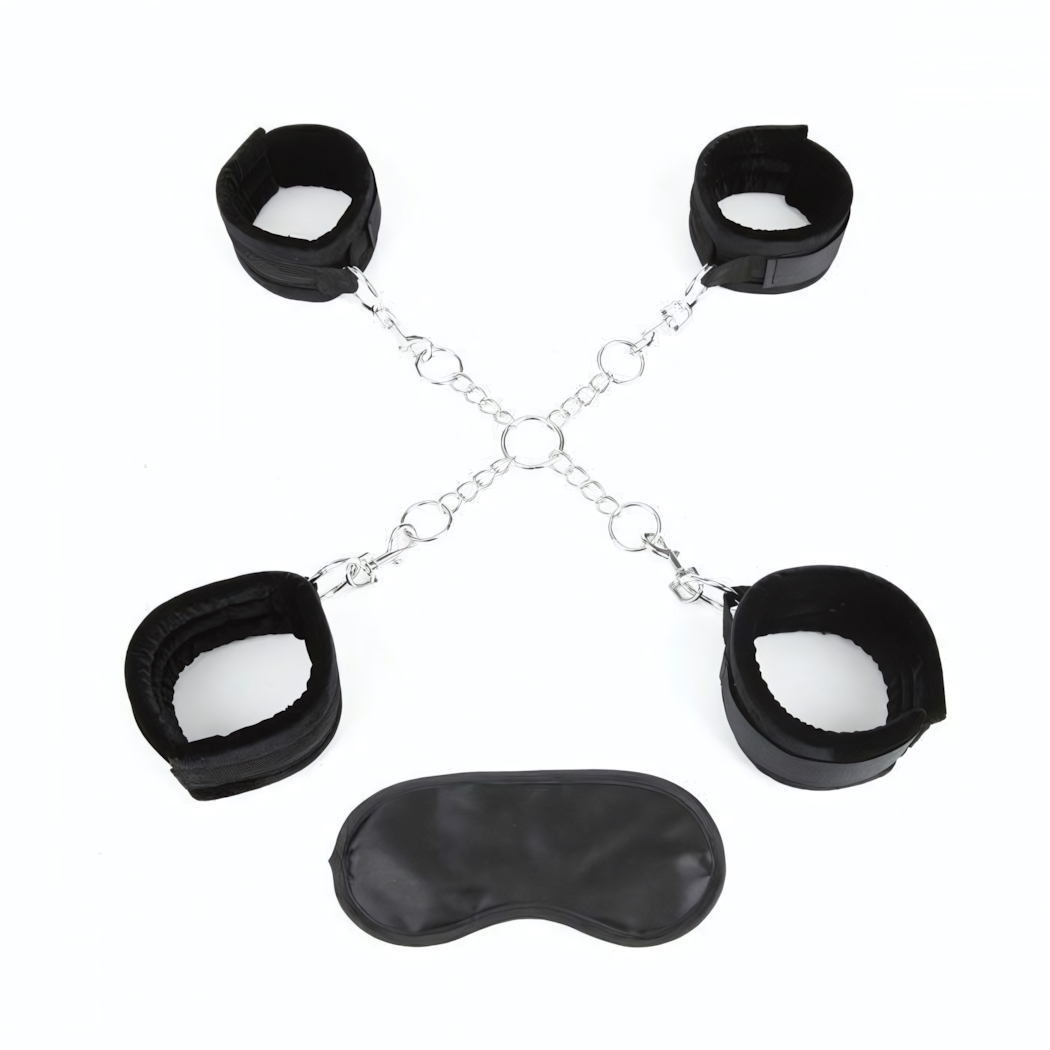 Наручники 'Deluxe Hogtie' с маской, черные, текстиль/металл, регулируемые манжеты