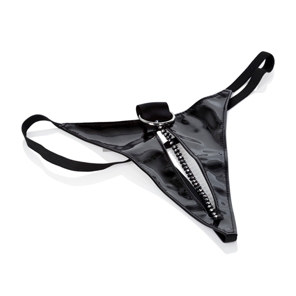- Соблазнительный дизайн: Треугольная передняя часть трусиков украшена вертикальной полосой из двух рядов мелких кристаллов, имитирующих бриллианты. В верхней части расположено металлическое кольцо («love ring»), открывающее возможности для фетиш-игры.