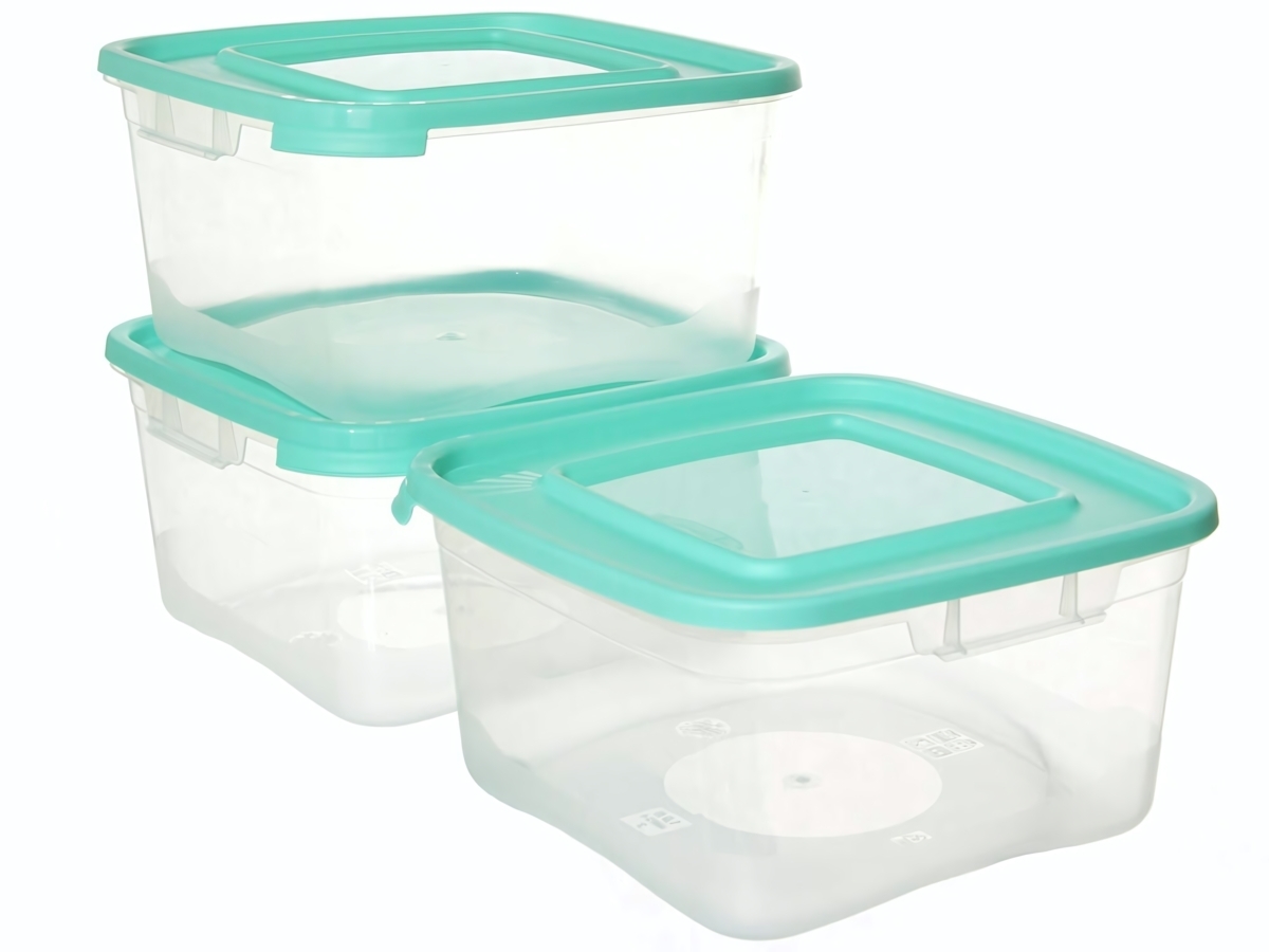 Прозрачные стенки позволяют легко видеть содержимое, а цветные крышки плотно закрываются на защелках, предотвращая протекания. Контейнеры можно использовать как в морозильной камере, так и для хранения продуктов в холодильнике или на полках.
