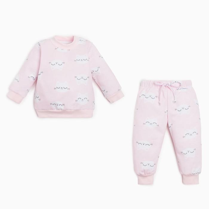 Комплект для девочек "Киса": кофта и штанишки, розовый, хлопок 100%, р.74-80 см