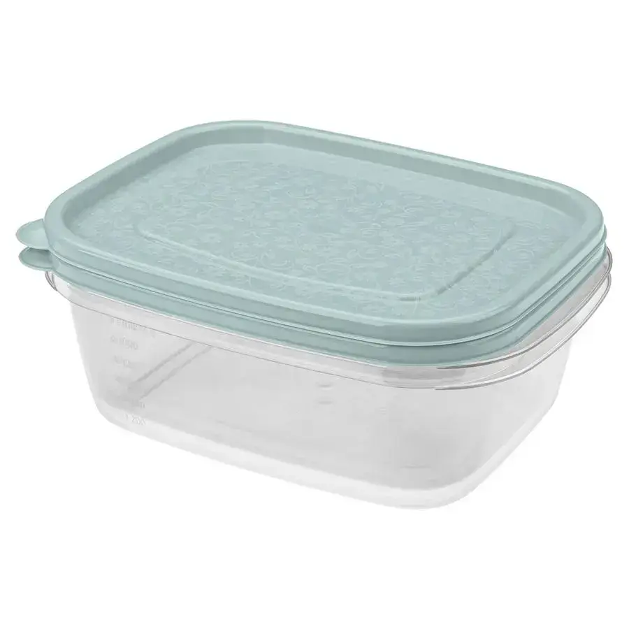 Данный комплект из двух пластиковых контейнеров объемом 1,25 литра идеально подходит для хранения различных продуктов, делая вашу кухню более аккуратной и функциональной. Прозрачный корпус обеспечивает быстрый обзор содержимого, а светло-голубая крышка с декоративным узором добавляет эстетики и уюта в интерьер.