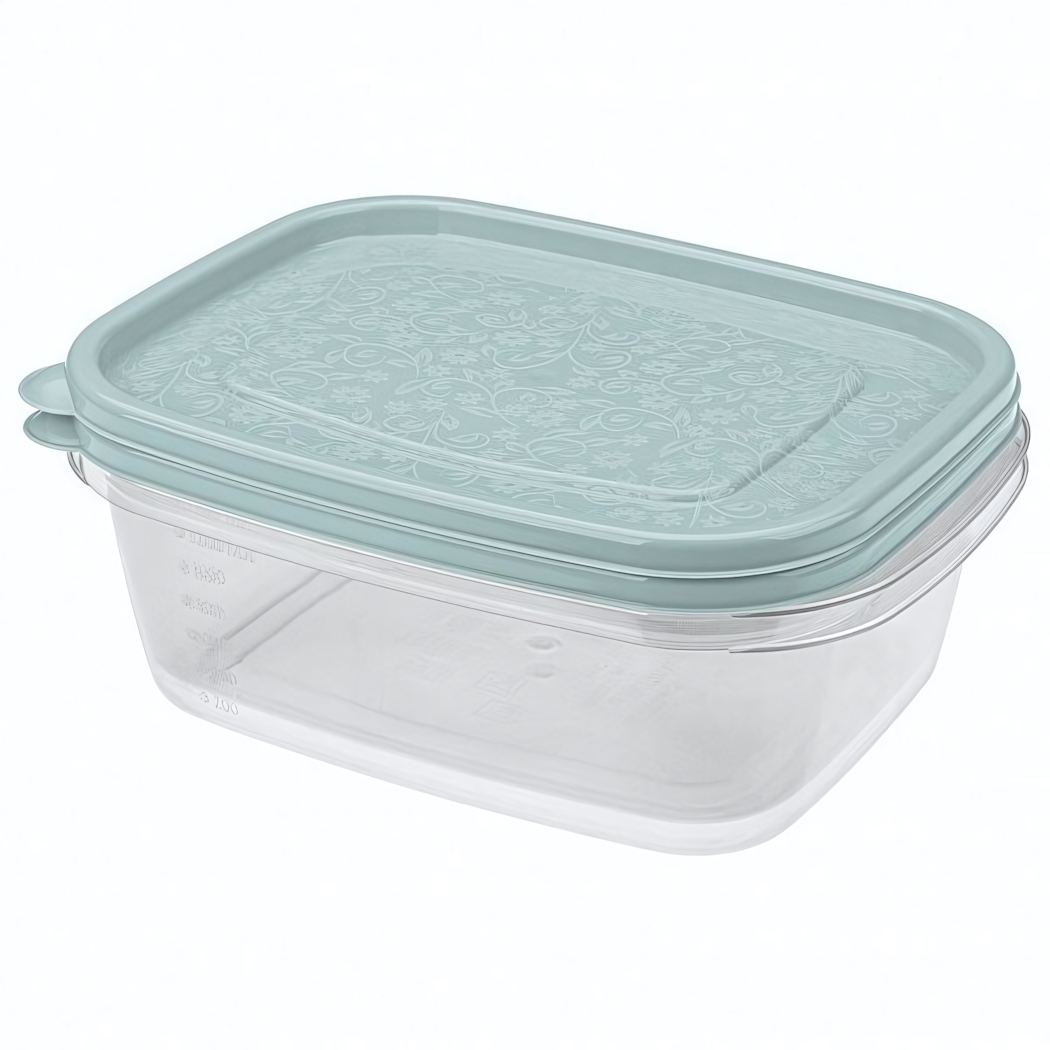 Контейнер объемом 1,25 литра выполнен из качественного прозрачного пластика с мерной шкалой, что позволяет легко контролировать количество содержимого. Стильная светло-голубая крышка с цветочным орнаментом не только украшает кухню, но и обеспечивает герметичное хранение продуктов.