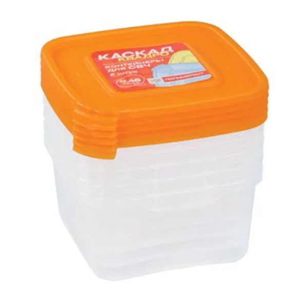 Комплект контейнеров СВЧ 0,46л (5шт.) квадро КАСКАД крышка цвет кирпичный