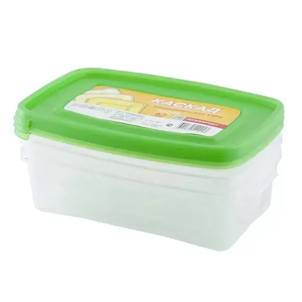 Прямоугольная форма позволяет компактно размещать контейнеры друг на друге. Зеленые полупрозрачные крышки с надежным замком предотвращают случайное открывание. Изготовлены из безопасного пластика без посторонних запахов.