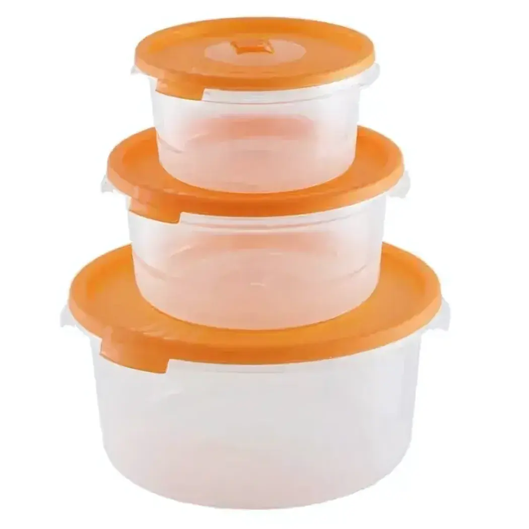 Комплект контейнеров для СВЧ, 3 шт, круглые, с клапаном, оранжевые крышки, пластик
