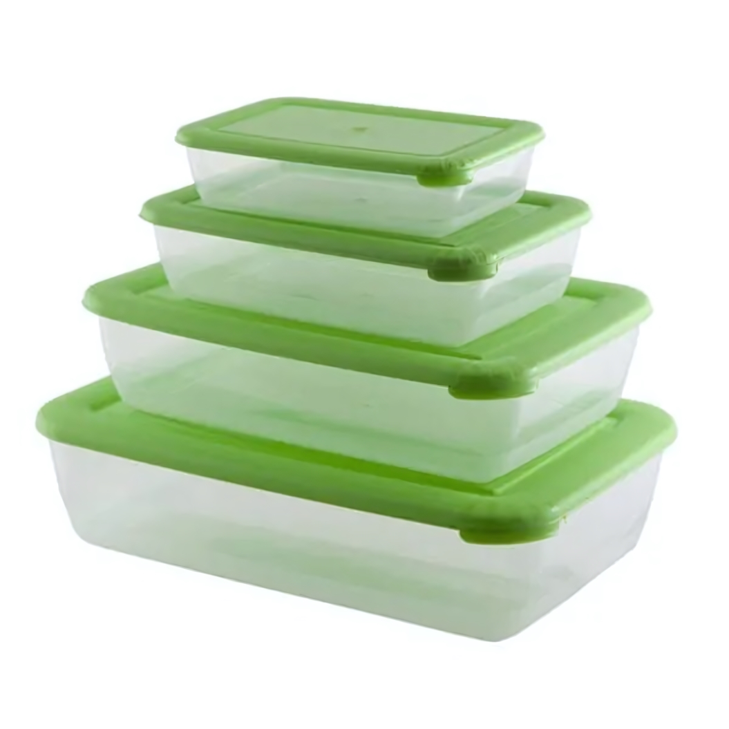- Надёжность: крышки зелёного цвета плотно закрываются, защищая продукты от высыхания и посторонних запахов.