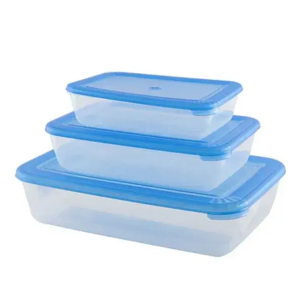 Ступенчатая конструкция позволяет экономить место в холодильнике. Прямоугольная форма с закругленными углами упрощает мытьё, а устойчивые крышки защищают от разливов при транспортировке. Подходит для сыпучих продуктов, готовых блюд и полуфабрикатов.