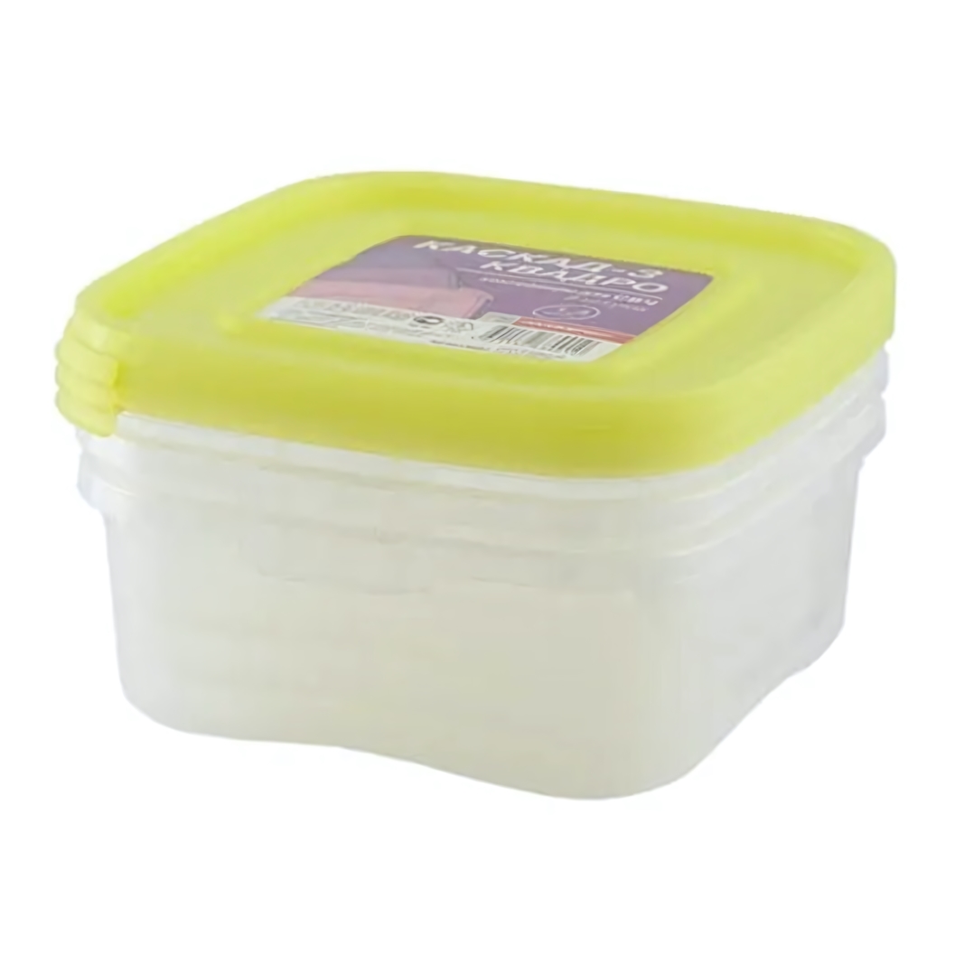 Комплект контейнеров СВЧ 1,4лквадро КАСКАД-3 цвет крышки желтый