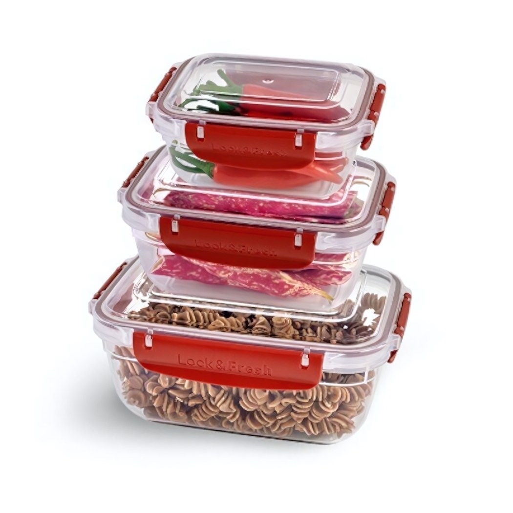 Контейнеры имеют три различных объема: 400 мл, 800 мл и 1400 мл, что позволяет использовать их для хранения разнообразных продуктов — от нарезанных овощей до макарон. Они идеально подходят для дома, дачи или пикника. Благодаря компактной прямоугольной форме, контейнеры легко укладываются друг на друга, что экономит место в вашем холодильнике или шкафу.