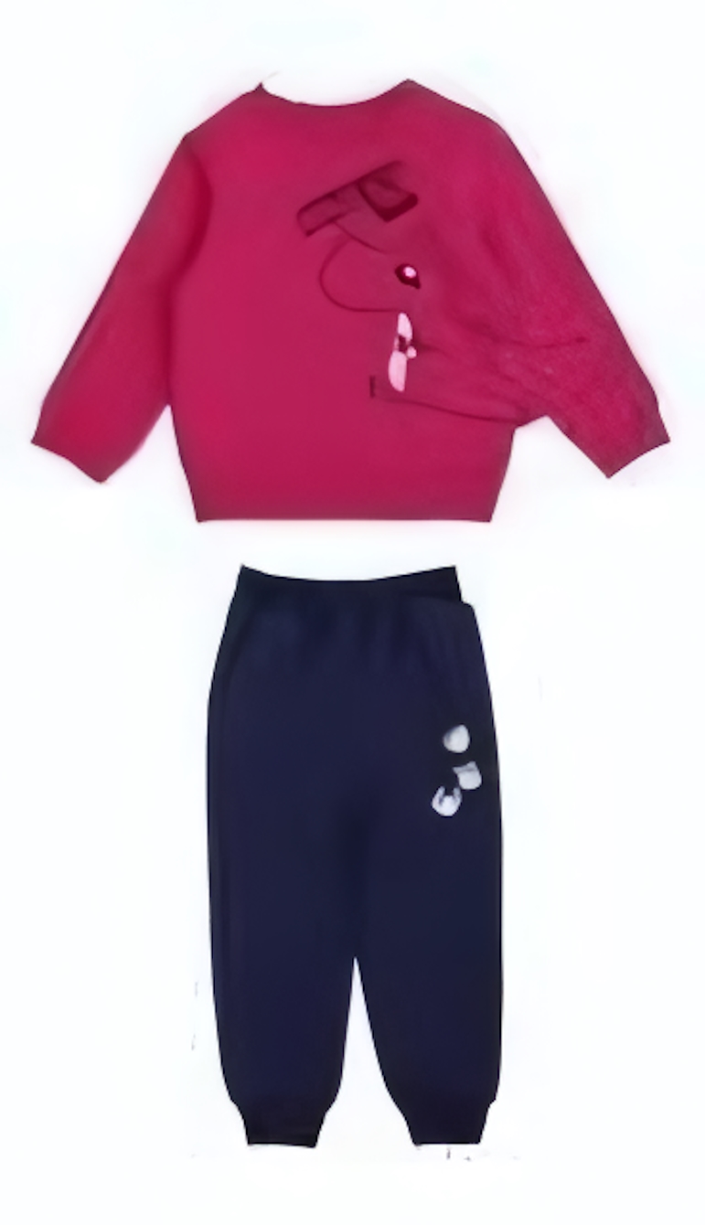 Комплект представлен в размере 104, который идеально подойдет для детей 3-4 лет. Стильное цветовое сочетание малинового и темно-синего сделает вашего ребенка заметным и модным.