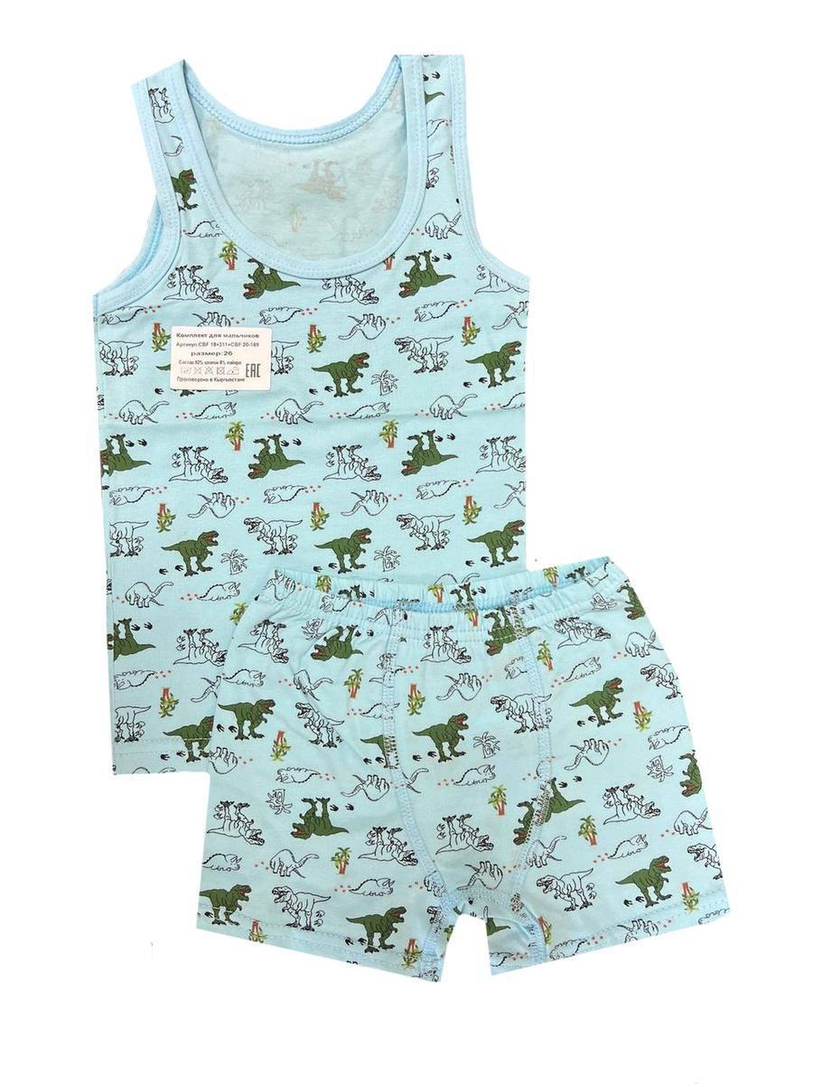 Комплект детский майка и шорты, светло-голубой с динозаврами, размер 28