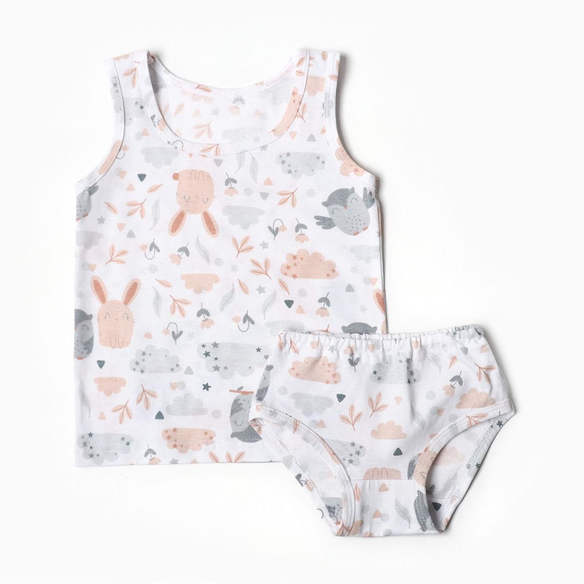 Комплект нижнего белья для девочки, майка и трусы, размер 80-86, цвет молочный/звери