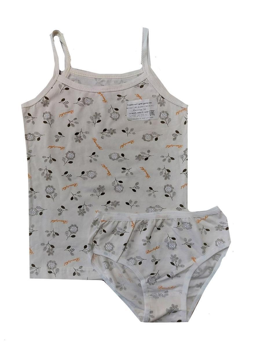 Комплект состоит из майки на тонких бретельках и трусиков, что обеспечивает удобство и позволяет коже дышать. Он идеально подходит как для домашнего использования, так и для активных игр на улице. Белье легко стирать, быстро сохнет, что значительно экономит время на уход за ним.