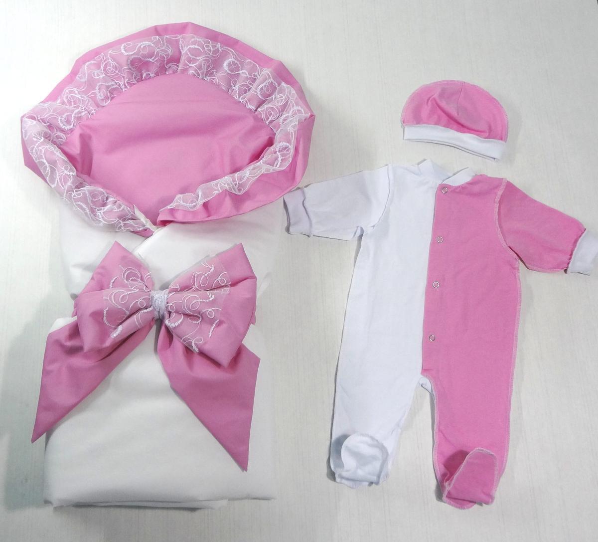 Конверт дополнен практичным синтепоновым утеплителем и хлопковым подкладом, что обеспечивает комфортную температуру для новорожденного. Бодик выполнен из дышащей кулирной ткани с удобными кнопками для быстрой смены.