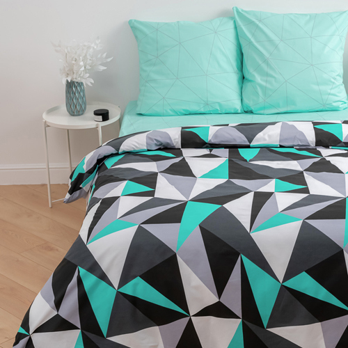 Постельное белье из коллекции 'Мозаика бирюза' создано для тех, кто ценит стиль и качество. Его уникальный дизайн, сочетающий геометрические узоры и однотонные элементы, станет идеальным дополнением современной спальни.