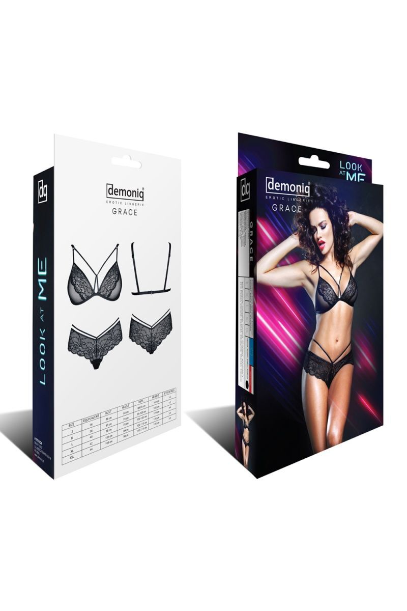 Комплект эротического белья 'Grace', размер S, черный, кружево и ленты