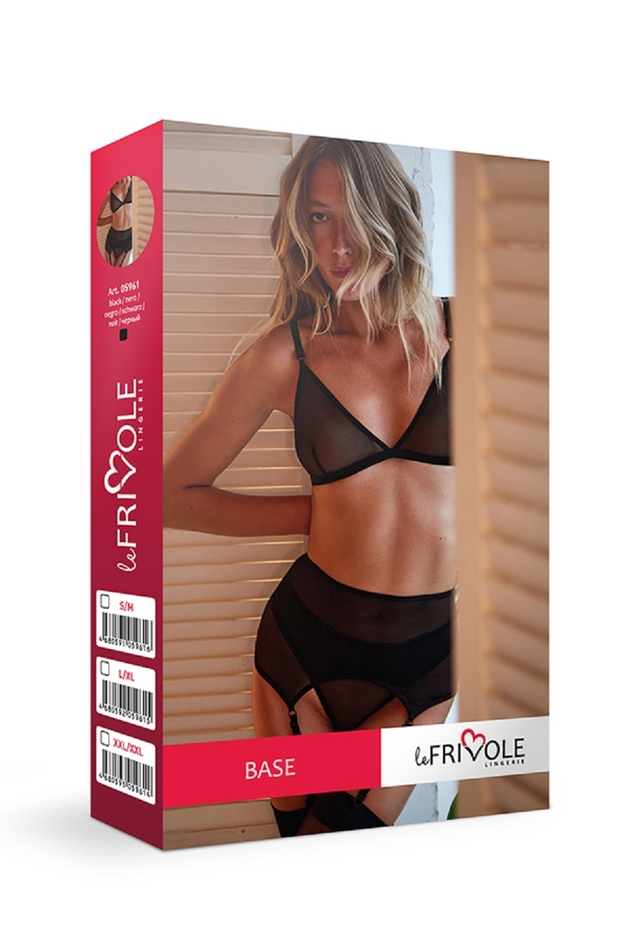 Комплект нижнего белья "Le Frivole" из сетки, 3 предмета, черный, S/M, эротический дизайн