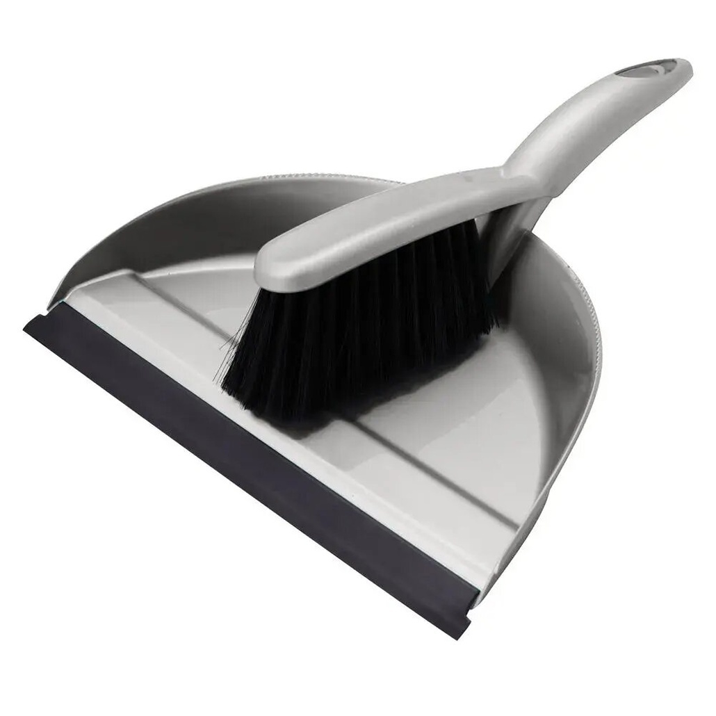 Набор для уборки: совок с резиновой кромкой и щетка, серый, 2 предмета