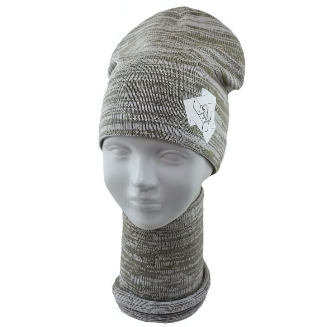 Комплект шапка двойная + снуд двойной, хаки, р.52-54, акрил/хлопок