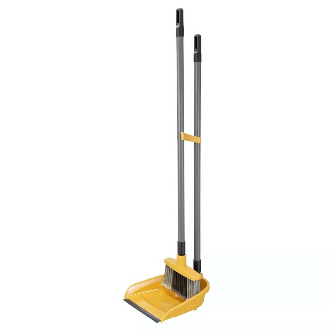 Совок выполнен из прочного пластика, устойчивого к ежедневному использованию. Желтый цвет делает комплект заметным и аккуратным в интерьере хозяйственной зоны. Это функциональное решение для квартиры, дома или офиса, которое помогает поддерживать чистоту быстро и без лишних усилий.