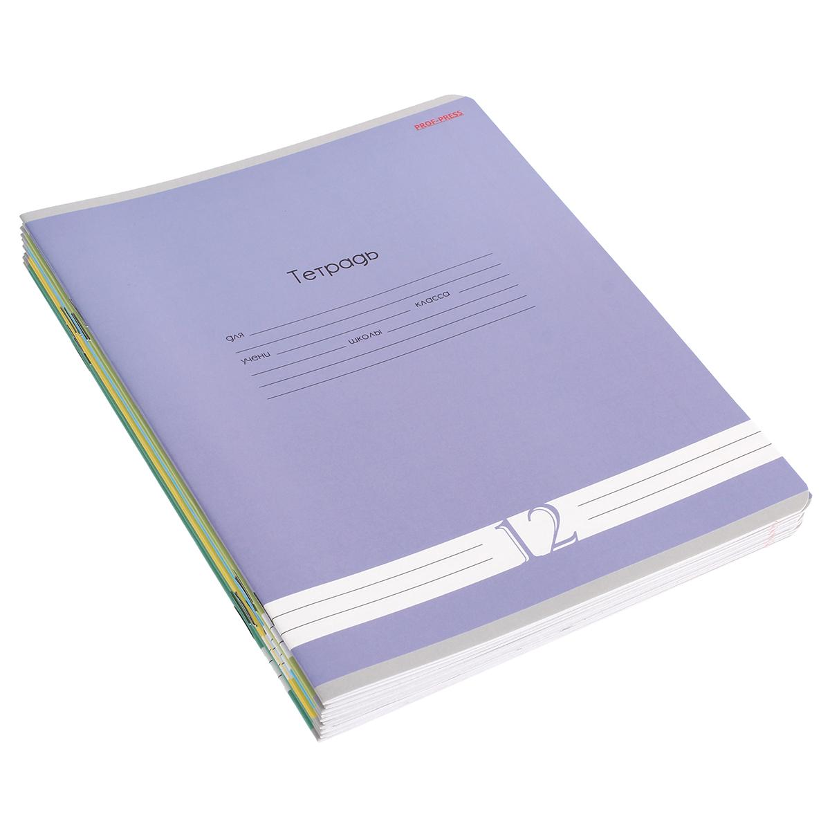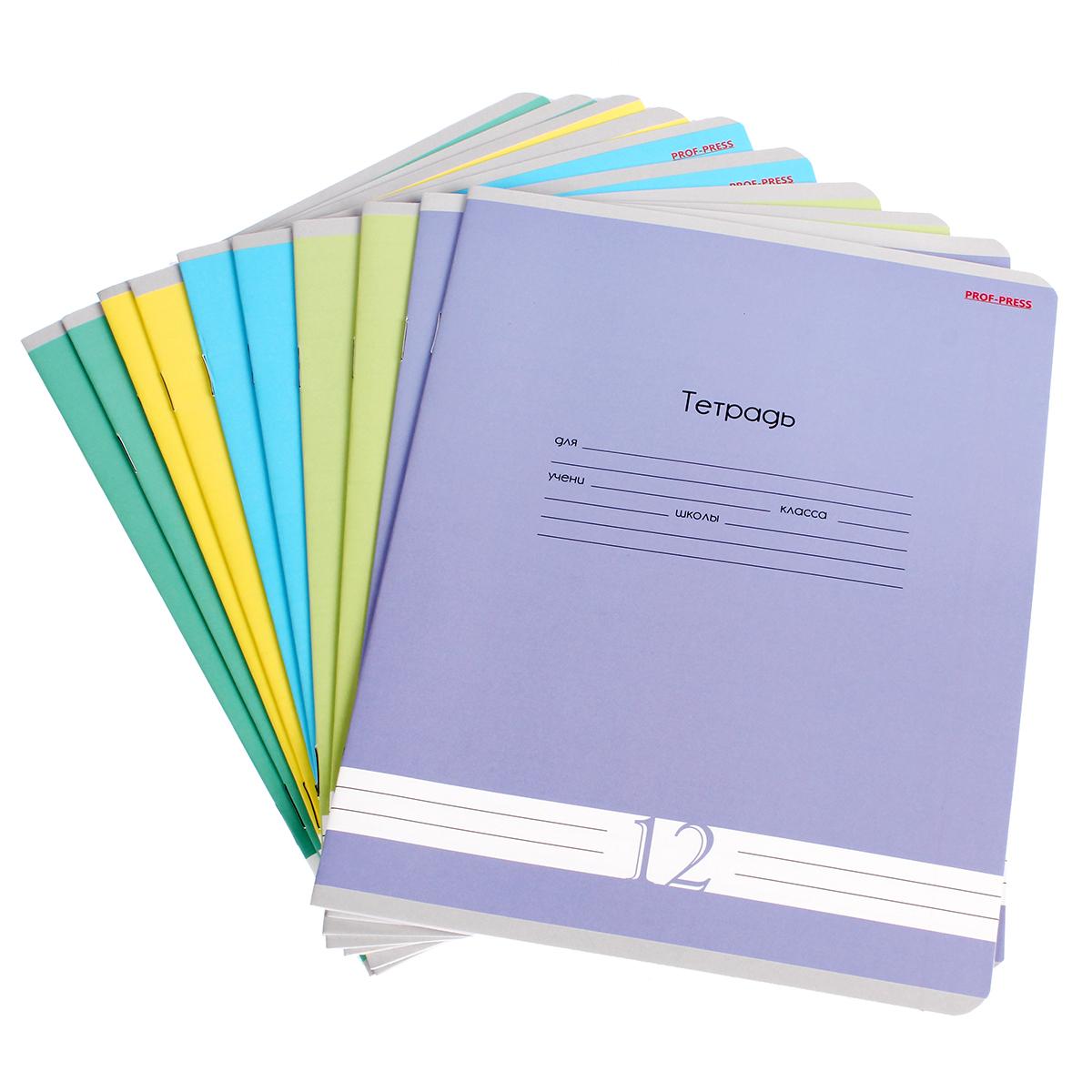 Тетради школьные А5, 12 листов в линию, 10 штук в наборе, микс цветов