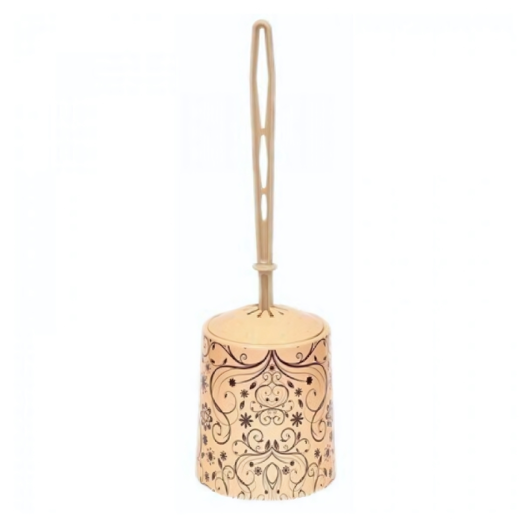 Туалетный ерш изготовлен из качественного пластика, устойчивого к влаге и механическим повреждениям. Светло-бежевая основа с изысканными черными узорами (цветочные и геометрические элементы) создает элегантный внешний вид и легко впишется в любой интерьер.