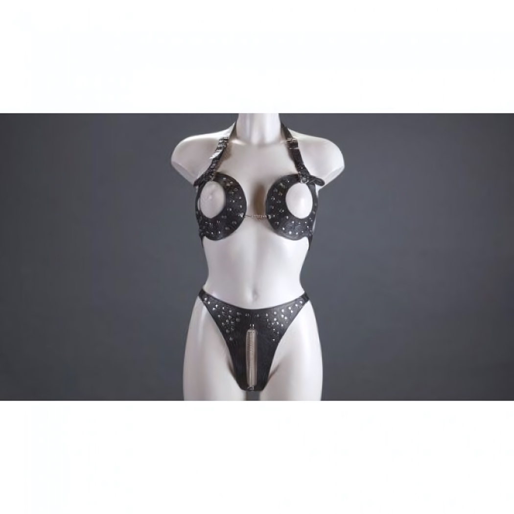 Погрузитесь в мир соблазна и уверенности с нашим комплектом женского белья, состоящим из лифа и стрингов. Этот комплект, выполненный из натуральной кожи, подчеркнет вашу индивидуальность и добавит нотку игривости в ваш гардероб. Стильный черный цвет и высокое качество материалов делают его идеальным выбором для особых случаев.