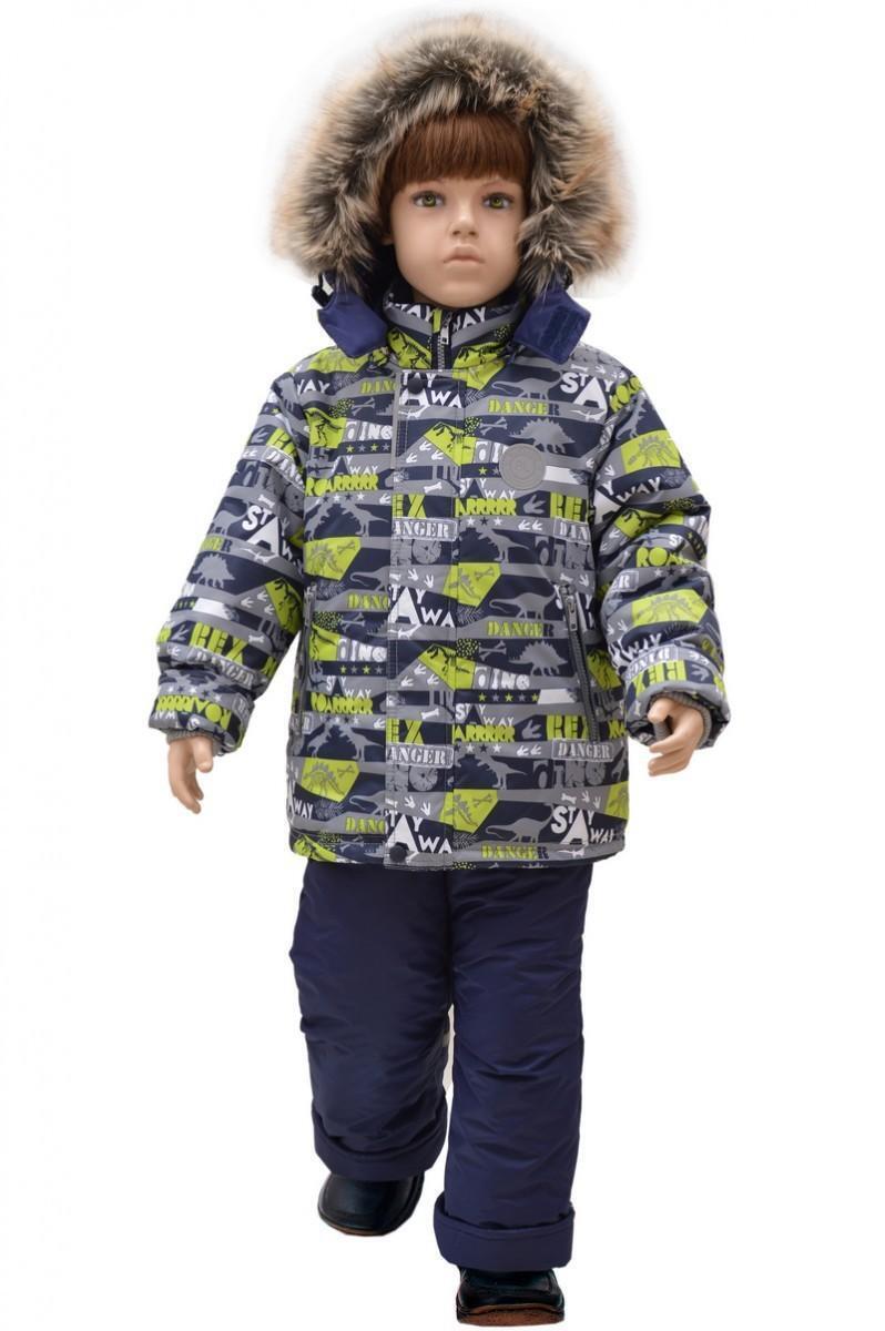 Комплект зимний для мальчиков, защита от холода, размер 92, принт динозавры, мембрана, капюшон с мехом